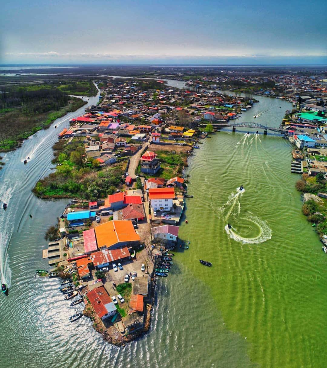 Founded in early 19th century, the town is situated on both sides of Anzali Lagoon. The port is located in a channel connecting two peninsulas.