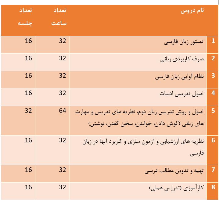 دوره تخصصی تربیت مدرس زبان فارسی با هدف تربیت مدرسان زبان فارسی و ایجاد مهارت های حرفه ای آموزش زبان فارسی به غیر فارسی زبانان طراحی شده است. طول دوره بین 12 تا 16 هفته آموزشی خواهد بود. دانشجو مدرسان درس های زیر را خواهند خواند: